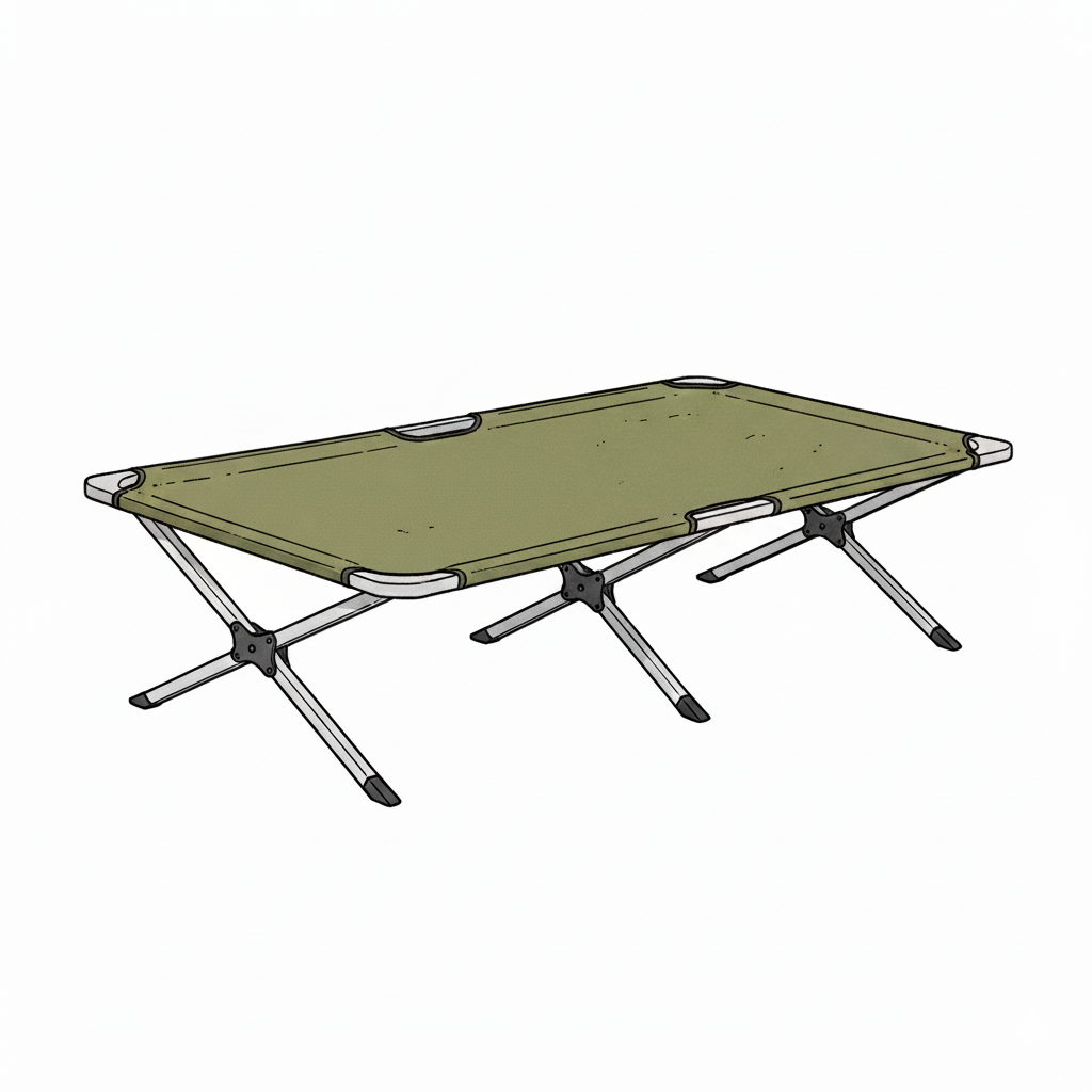 コットはフレームと布でできた簡易ベッドのことを指します。コットの上で寝ることで、地面からの冷えが伝わるのを防いでくれます。また、ベッドとしてだけでなく、ベンチやテーブルとして使用することもできる優れモノなので、用意しておくとキャンプのクオリティが一段上がります。
