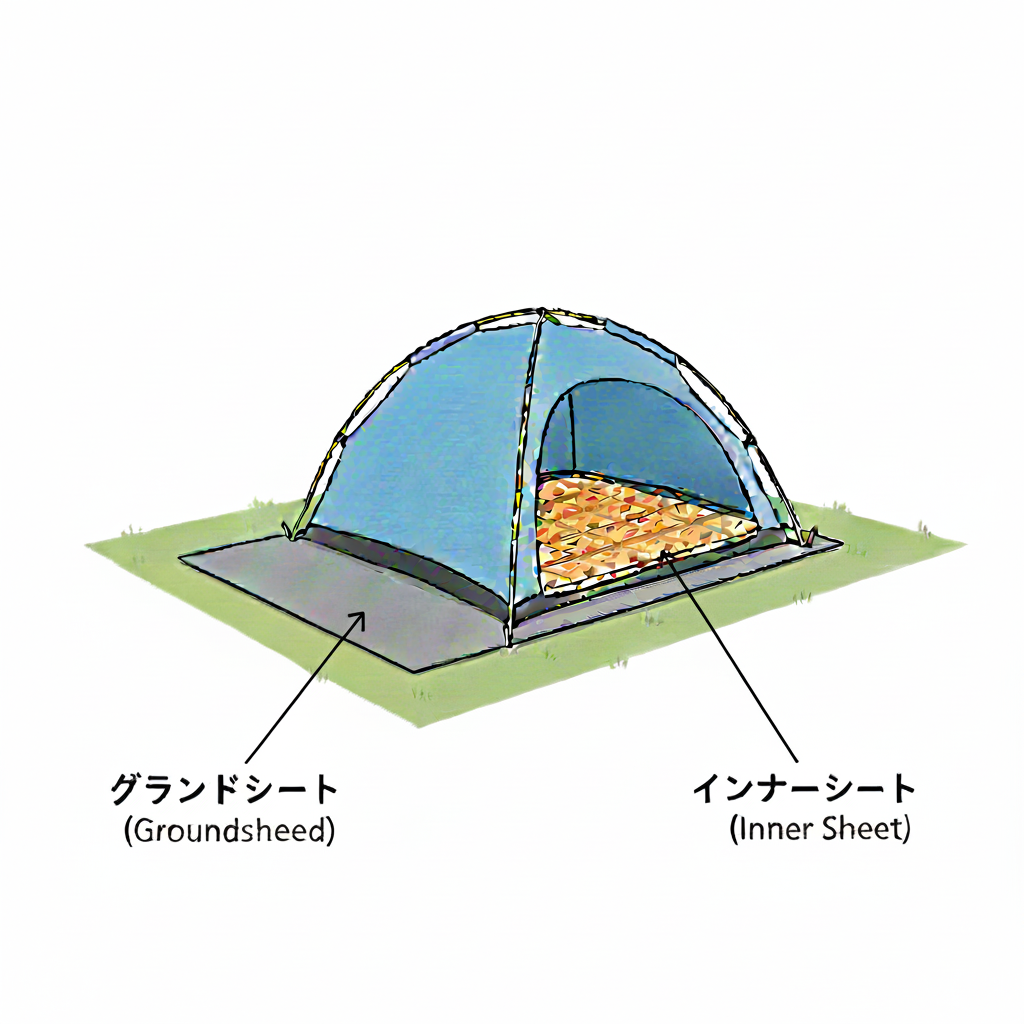 グランドシートはテントと地面の間に敷くシート、インナーシートはテントの中の床に敷くシートです。地面の凹凸感を減らしてくれるだけでなく、地面からの冷えを遮断してくれるため、テント内の快適性が向上します。